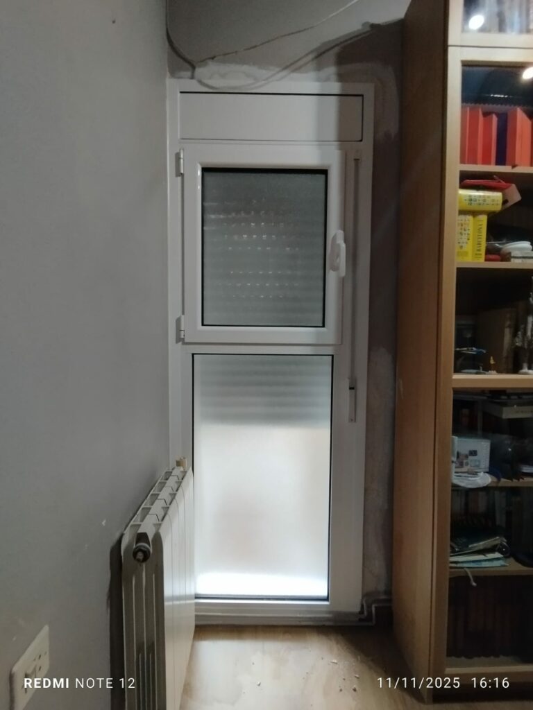 8 marzo, 2021Instalación de balconera corredera en aluminio lacado blanco, de cuatro hojas en cuatro carriles con 3/4 partes de espacio libre de paso y con microventilación, de la serie minimalista Slide de Alugom.