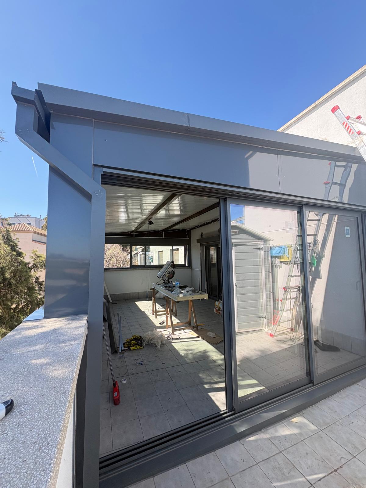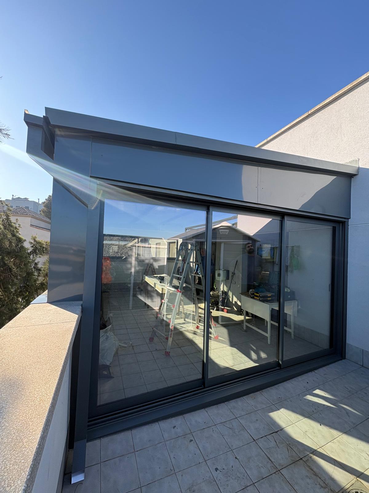 Cerramiento compuesto por ventanas y puertas correderas de dos y tres hojas con vidrio climalit 4 – 16 gas argón – 4 plus planitherm 4s, de la serie Silver 76 RPT Minimalista en lacado gris
