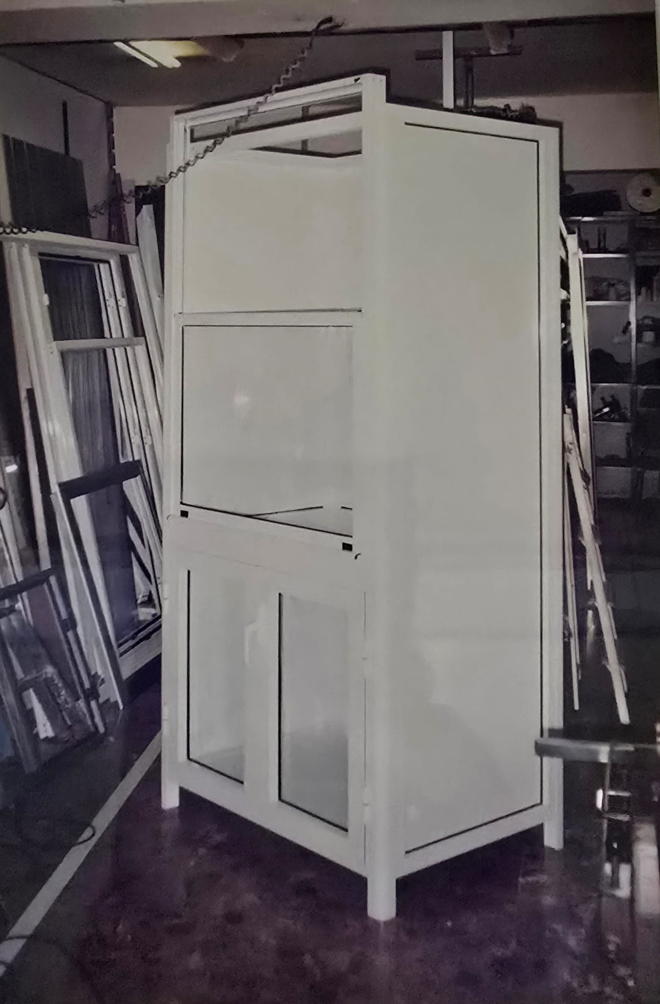 Hace 35 años, en 1990, fabricamos y enviamos una estructura especial en aluminio lacado blanco como banco de pruebas para un laboratorio en Túnez. Este proyecto fue solo fabricación, sin instalación en sitio (la instalación la realizó el cliente local).
