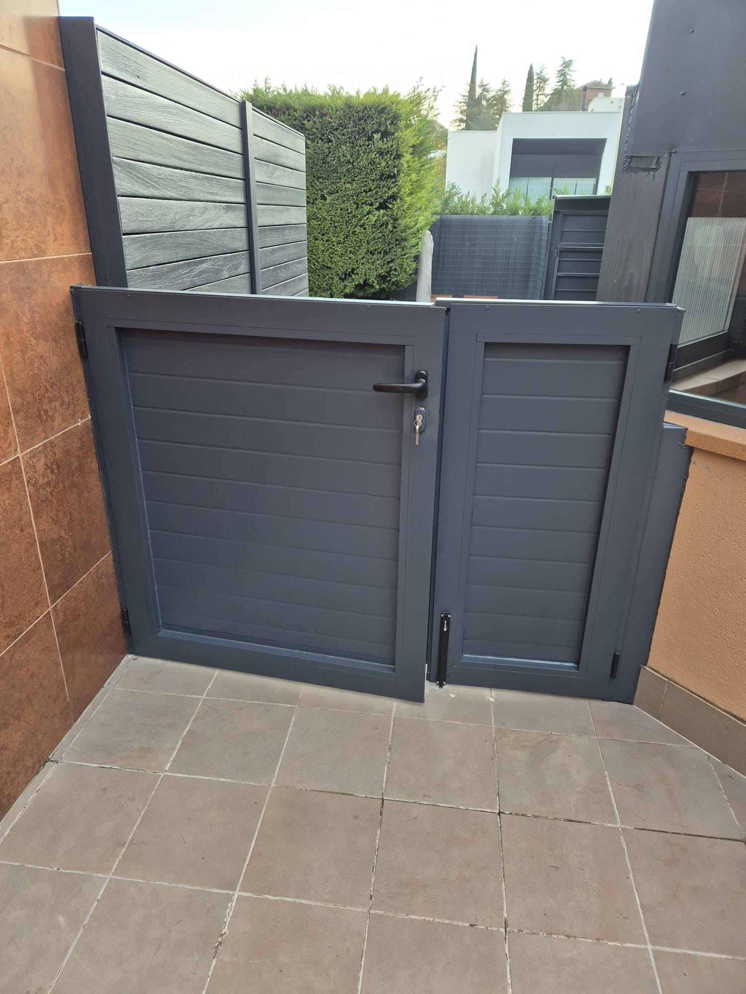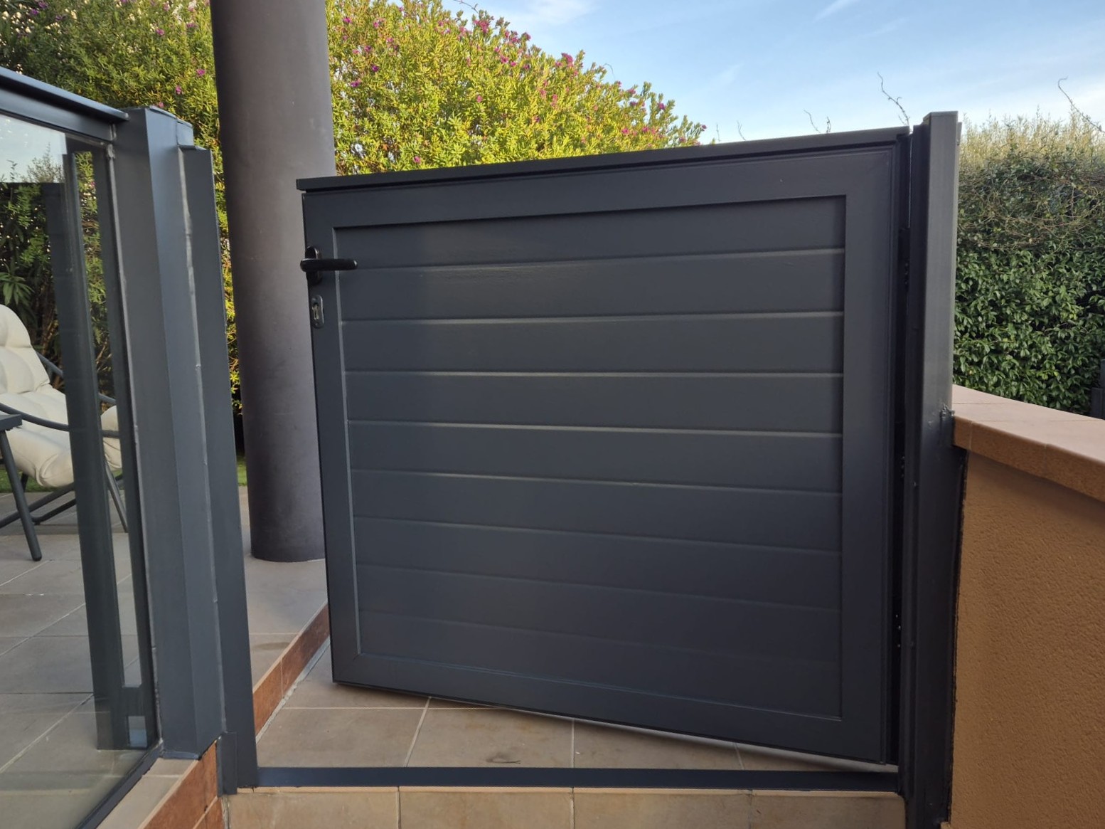 Puerta practicable con chapa sandwich en lacado negro forja texturizado
